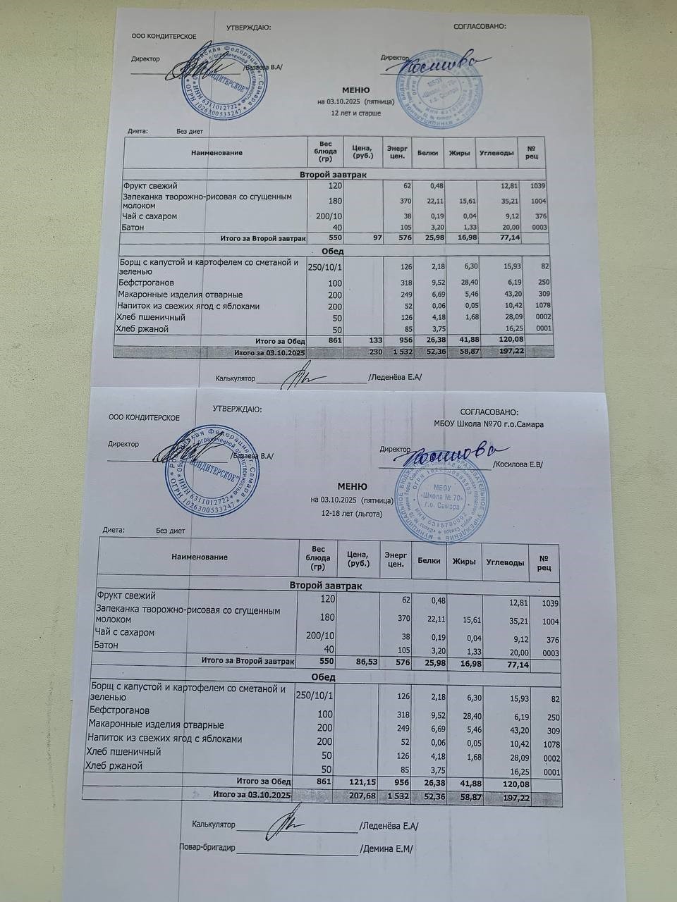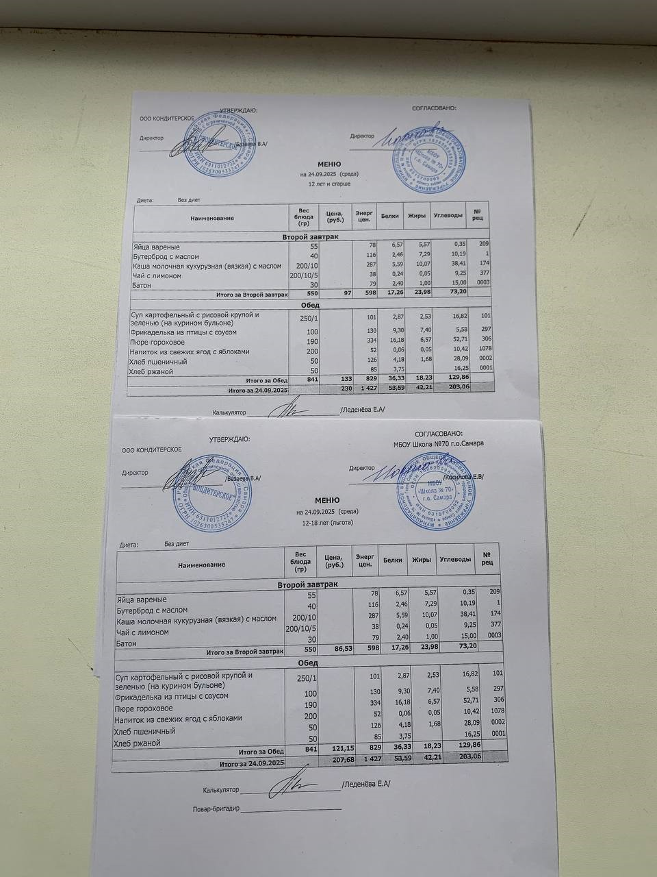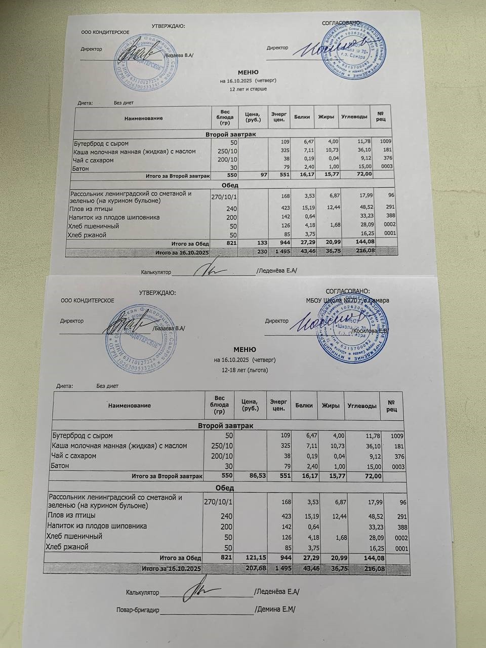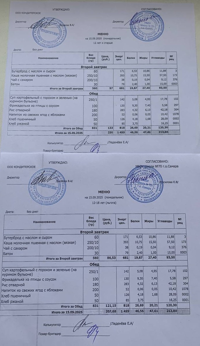 Меню с 12 лет (и льгота):