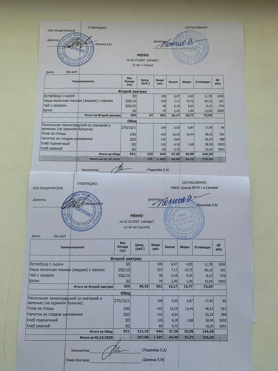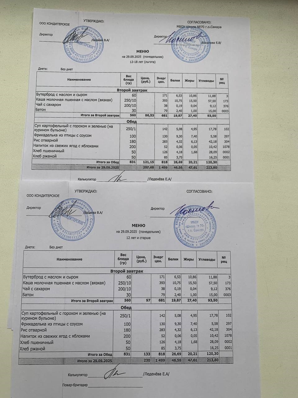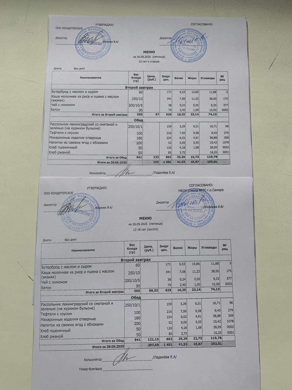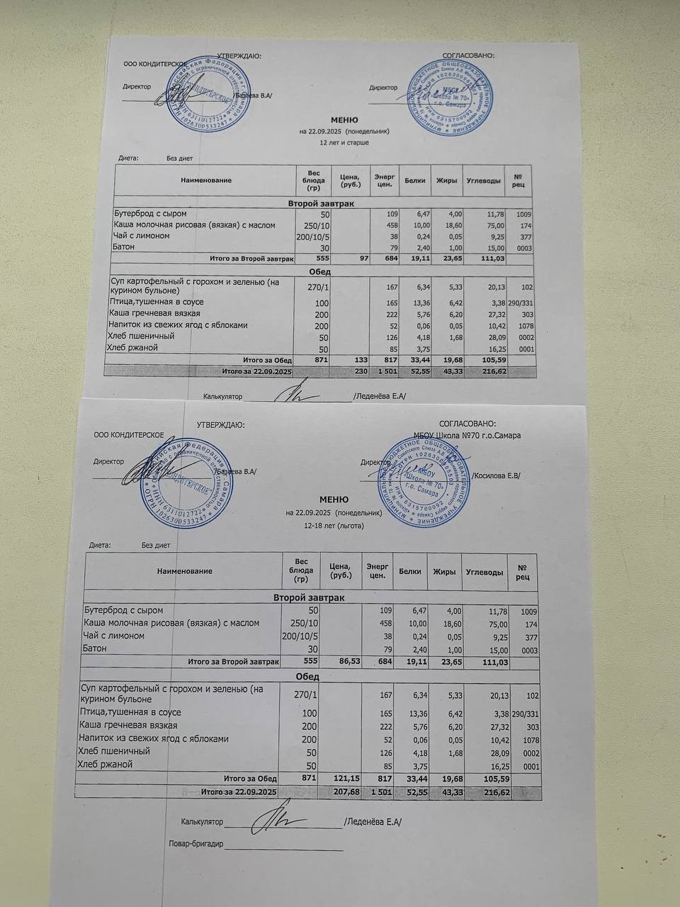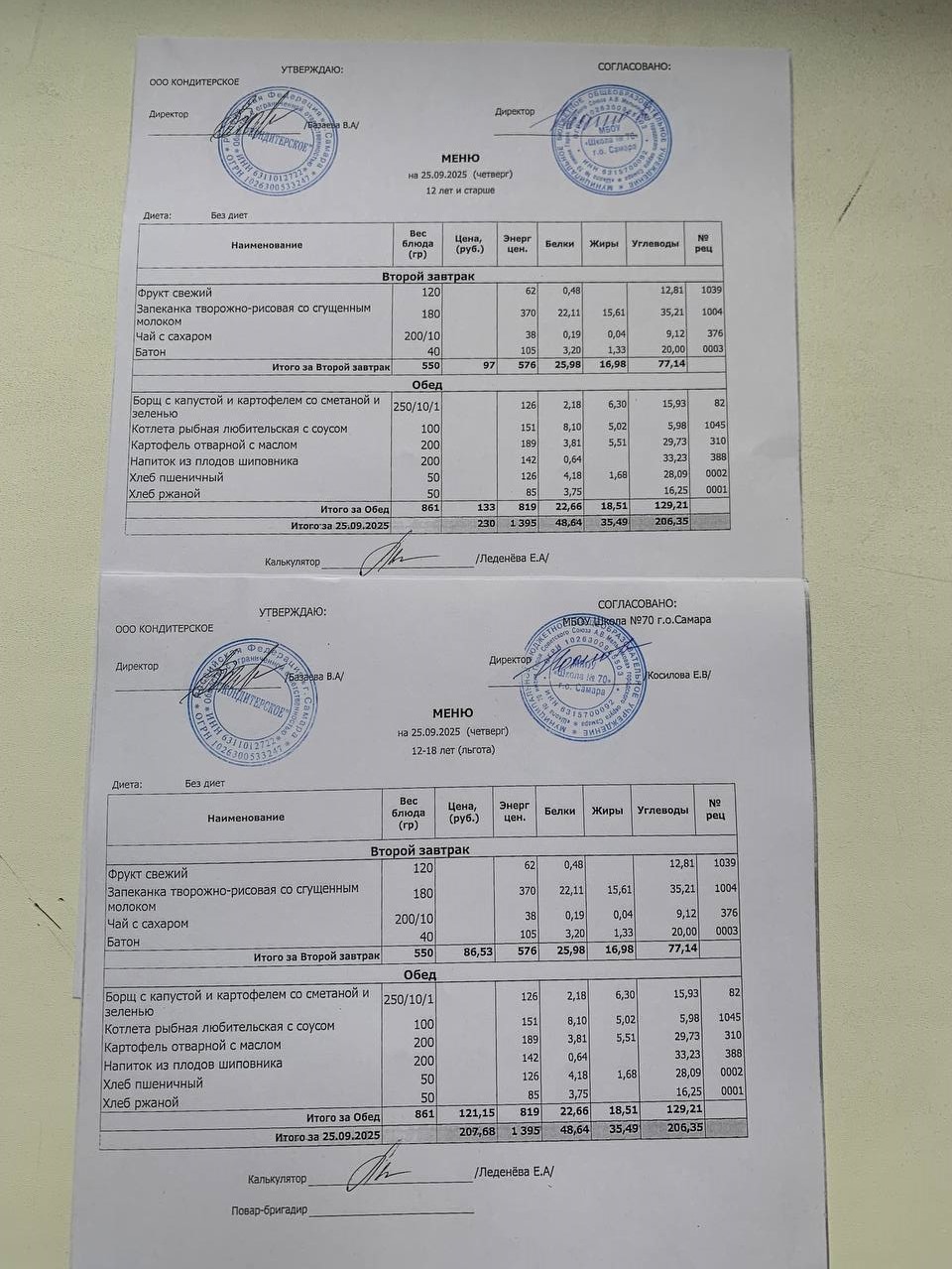 Меню с 12 лет (и льгота):