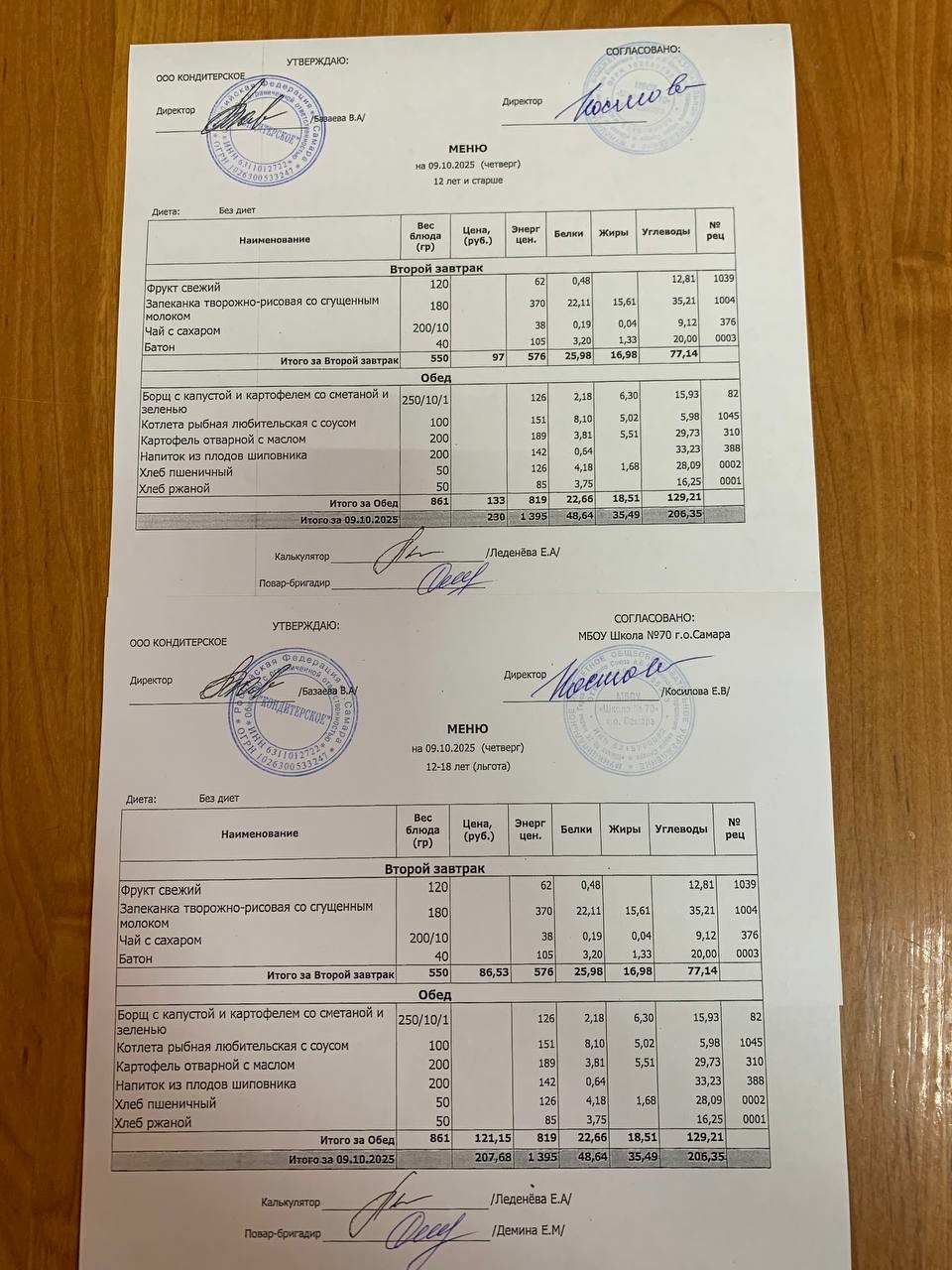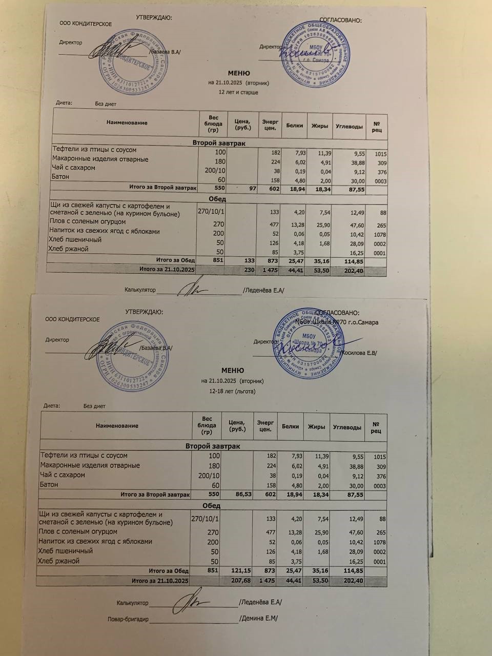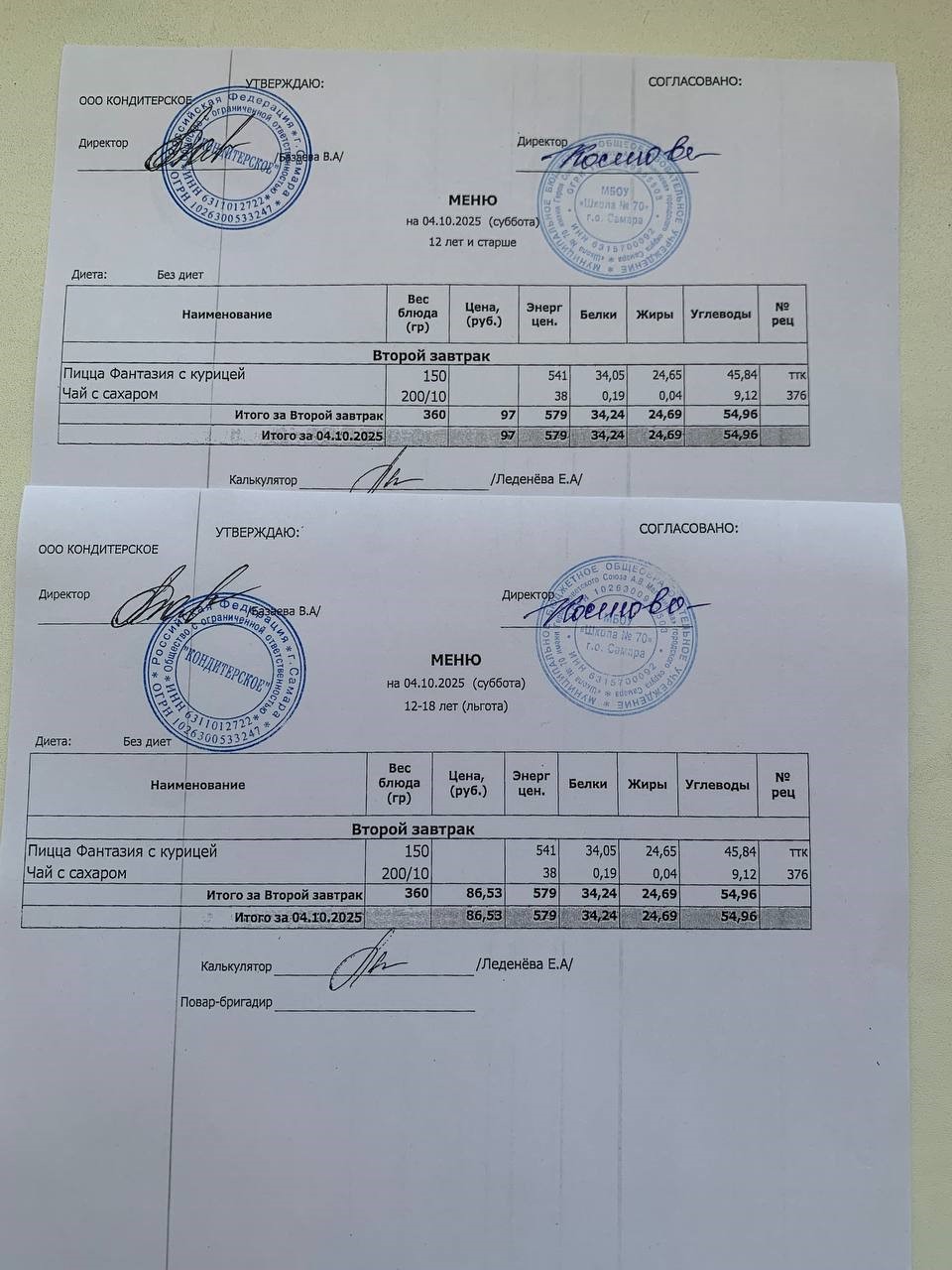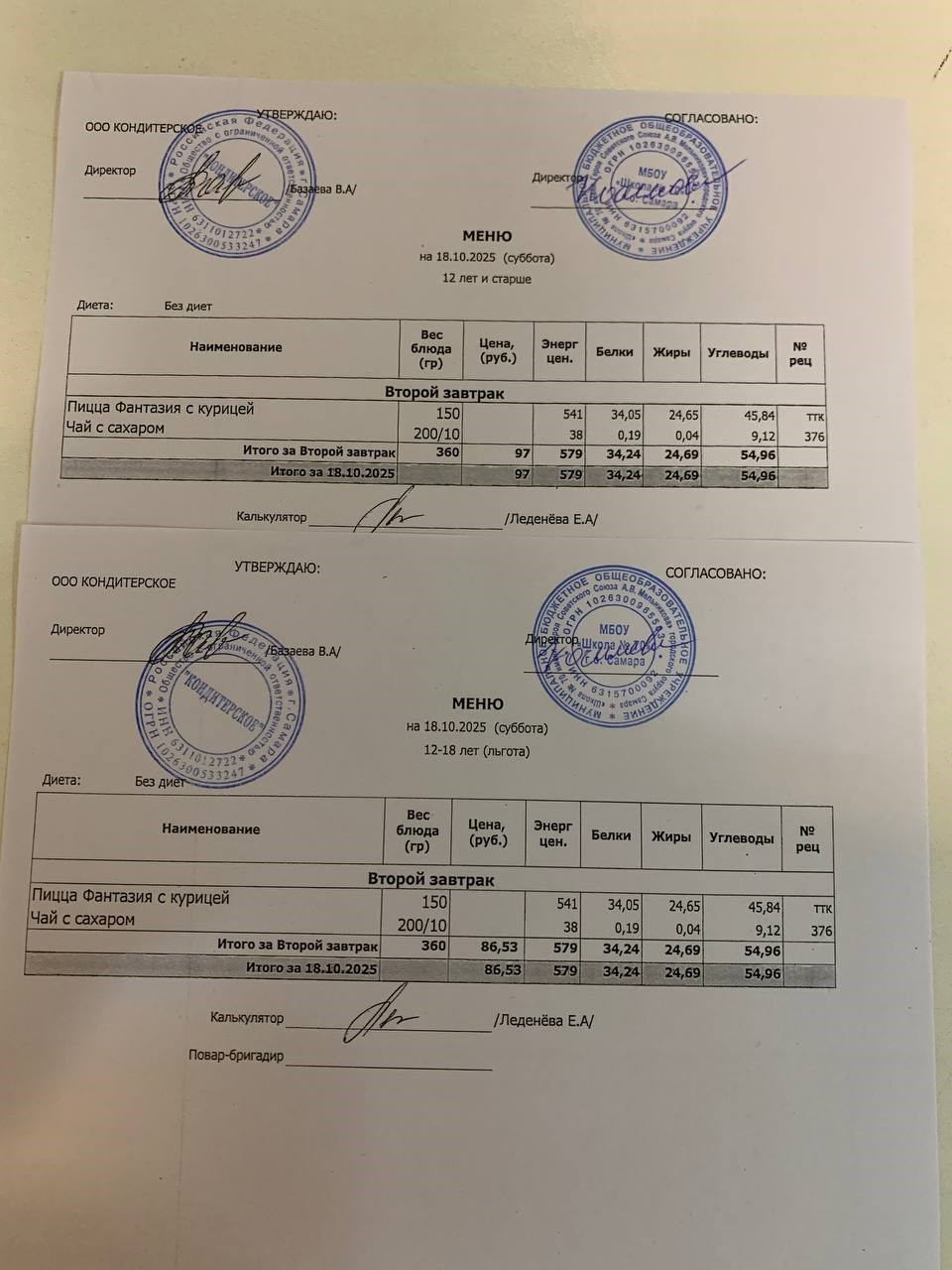 Меню с 12 лет (и льгота):