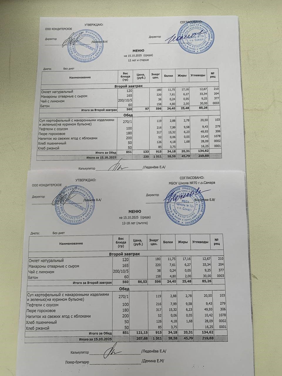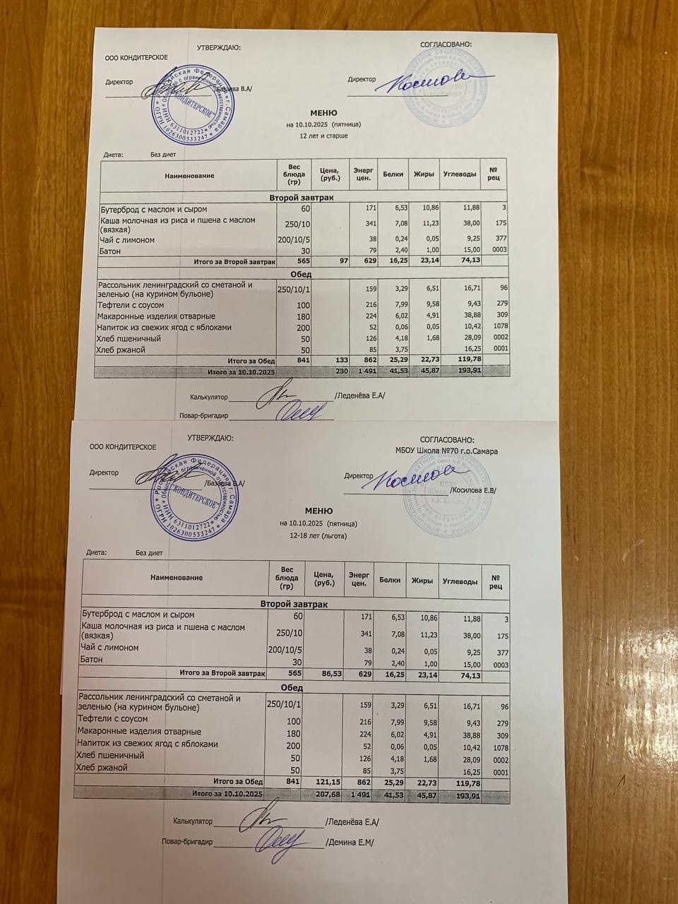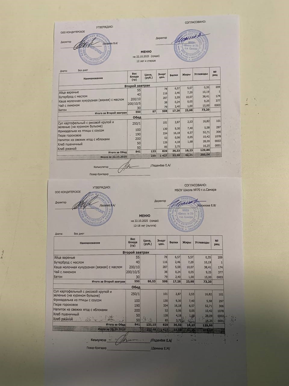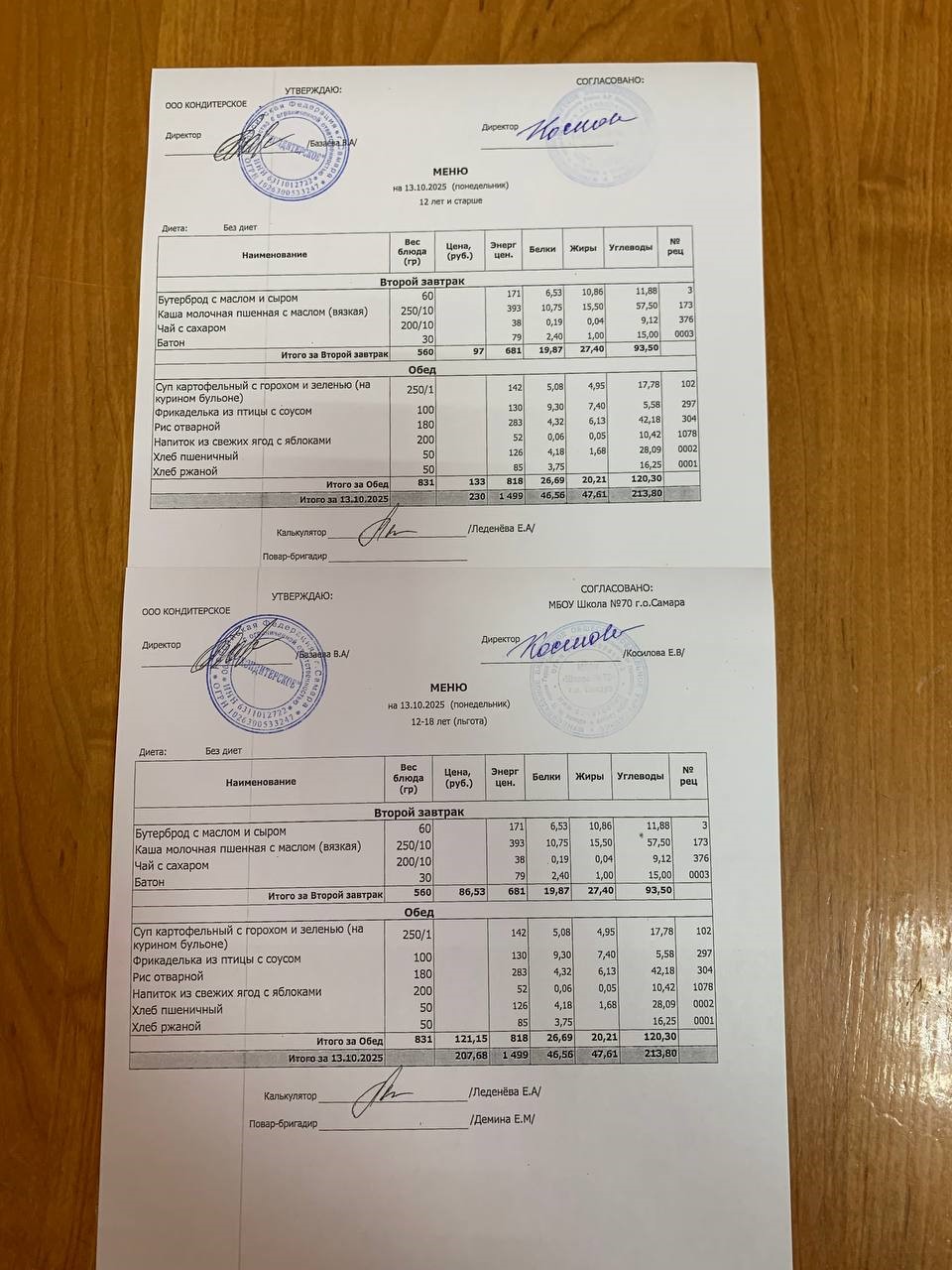 Меню с 12 лет (и льгота):