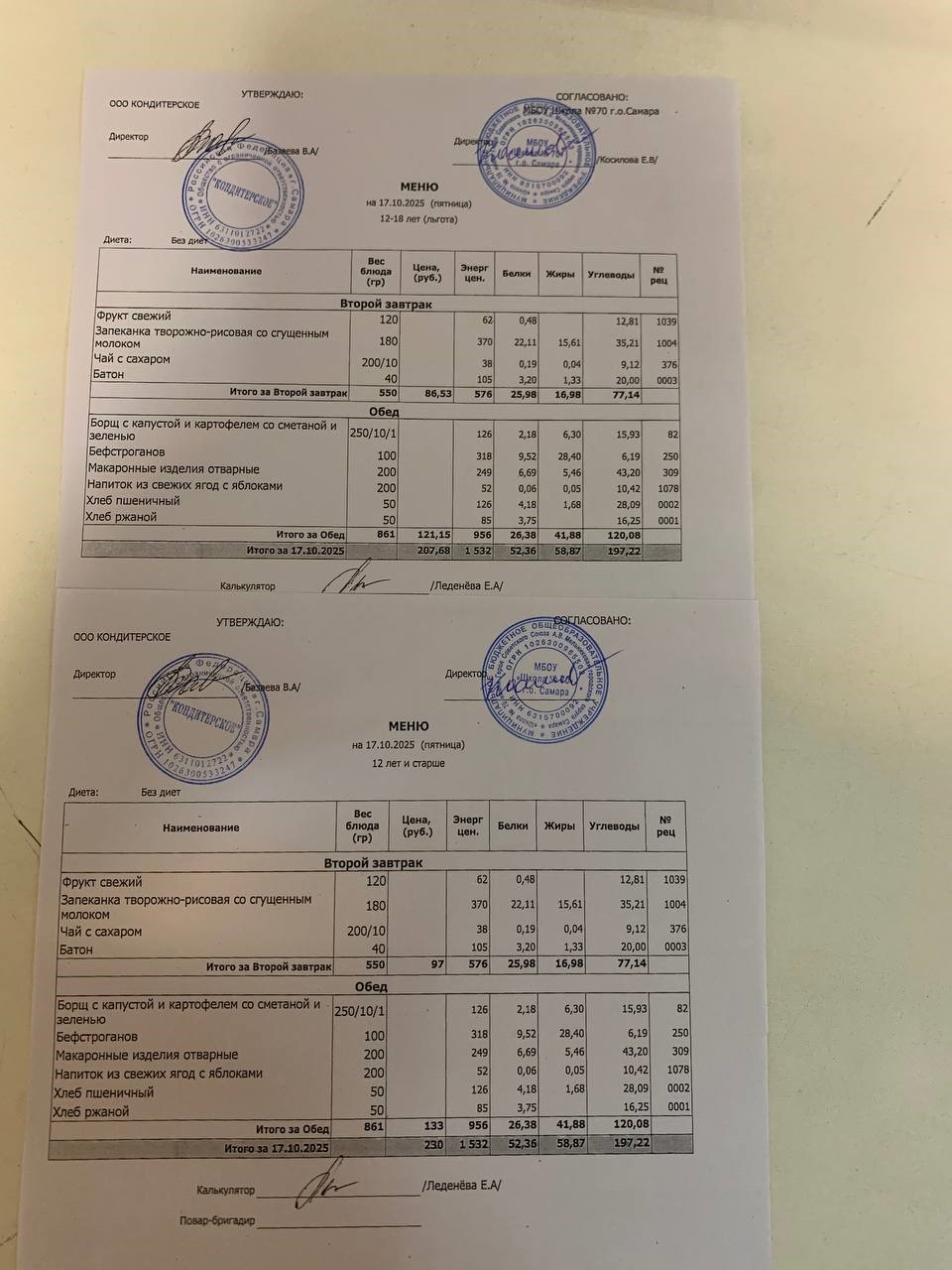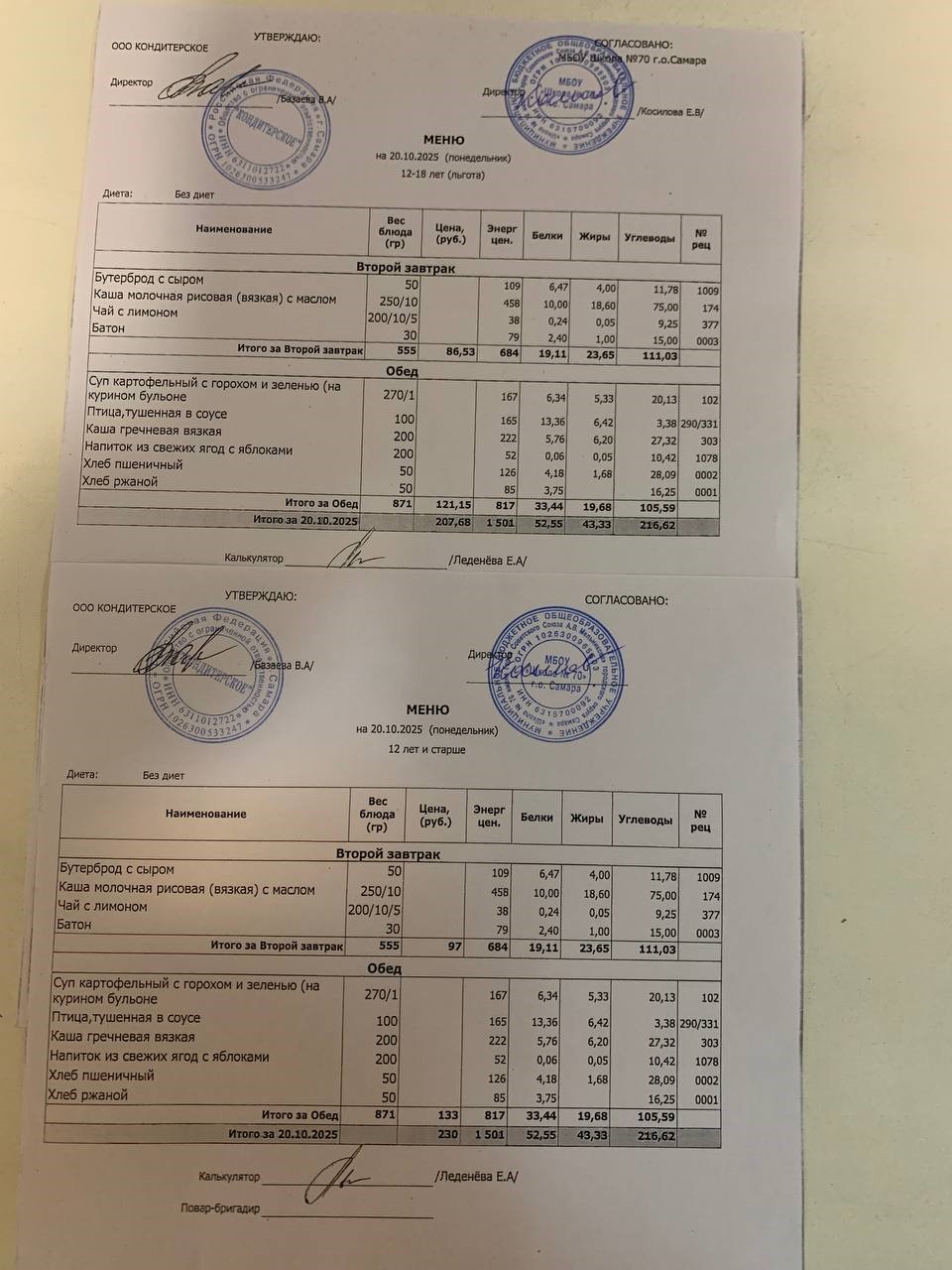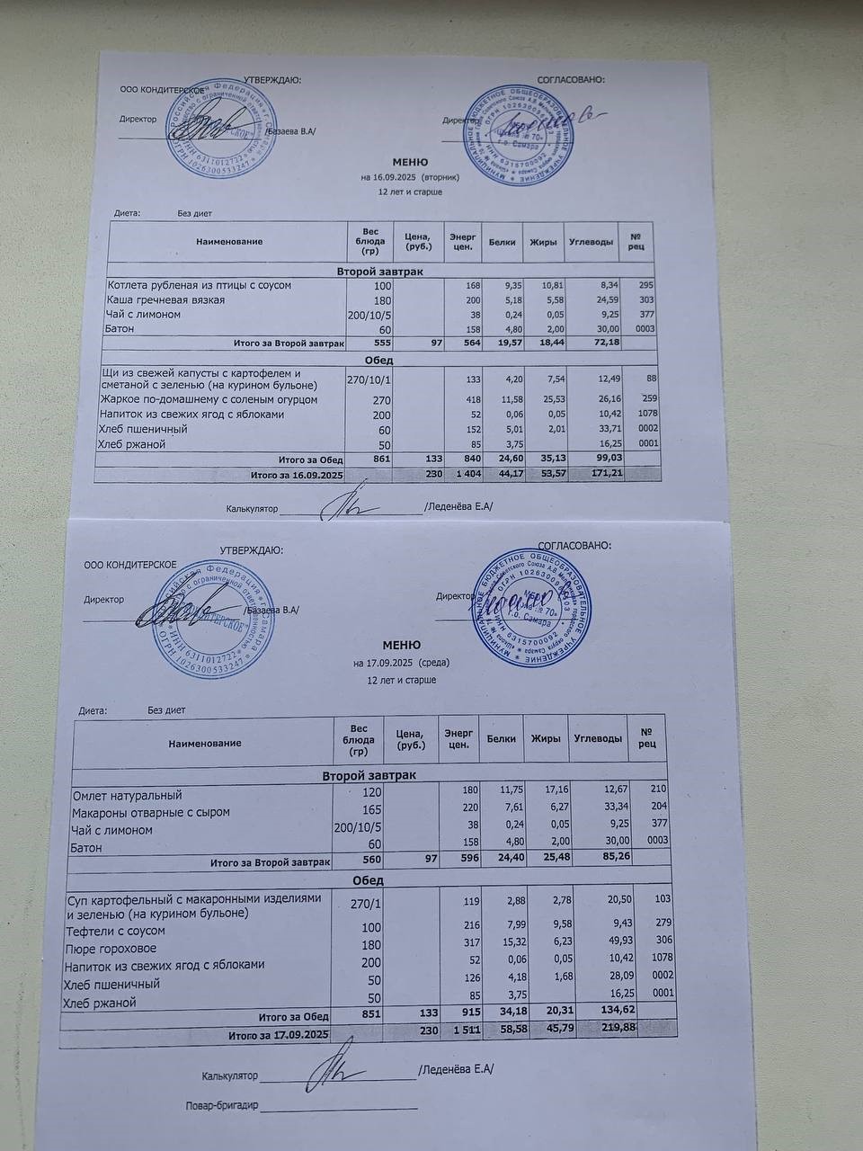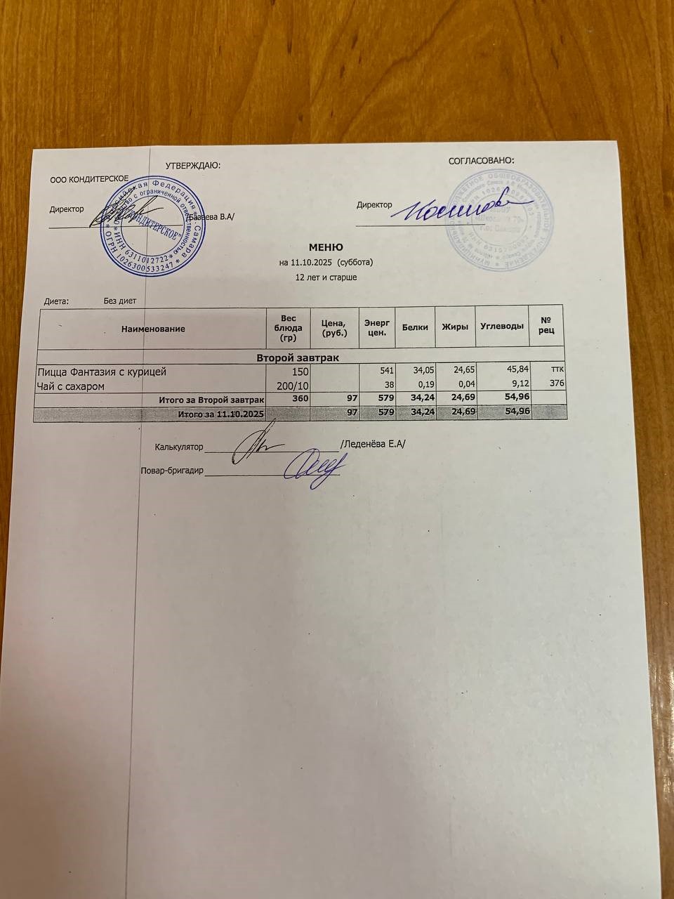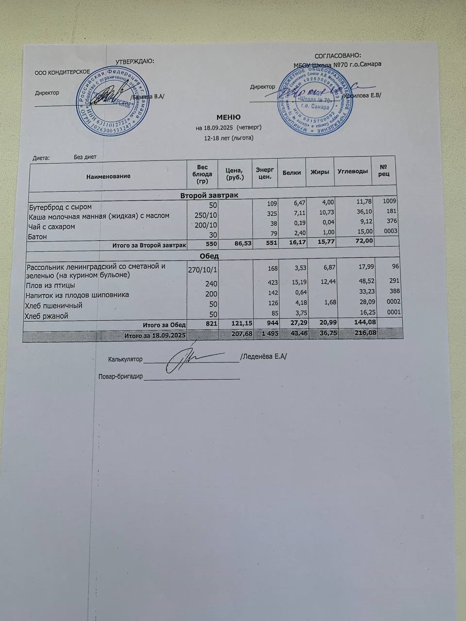 ЕЖЕДНЕВНОЕ МЕНЮ горячего питания на 2025-2026 уч.год.