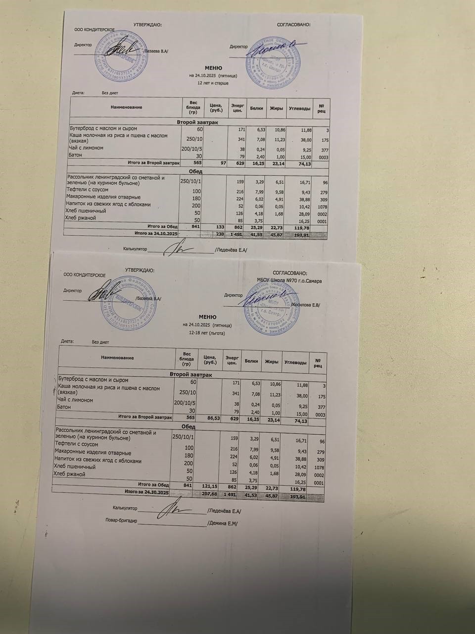 ЕЖЕДНЕВНОЕ МЕНЮ горячего питания на 2024-2025 уч.год.