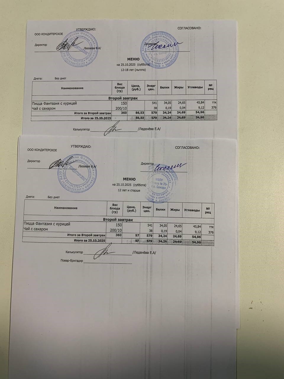 Меню с 12 лет: