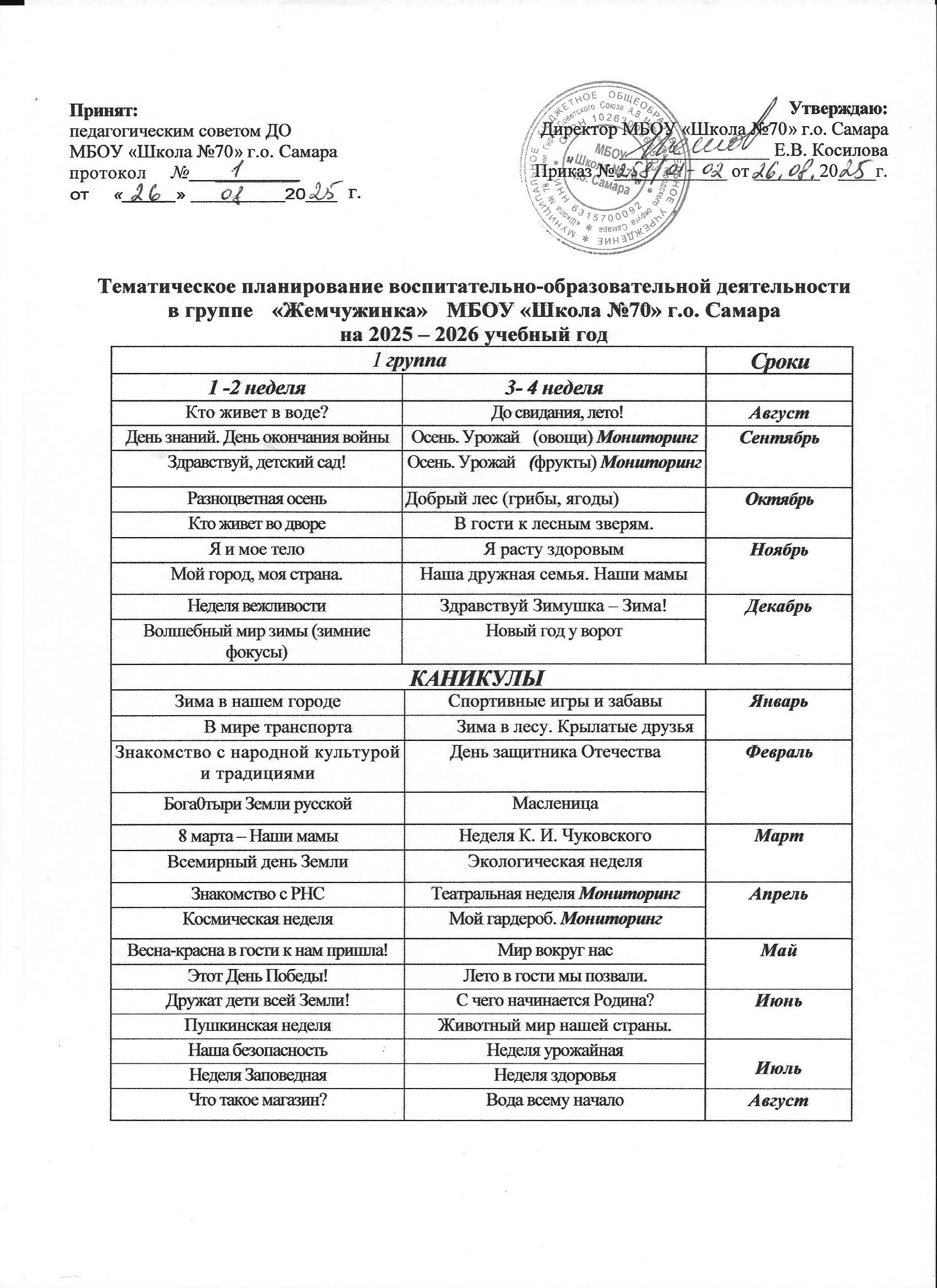 - Тематическое планирование воспитательно-образовательной деятельности дошкольного отделения МБОУ "Школа №70" на 2025-2026 уч. год.